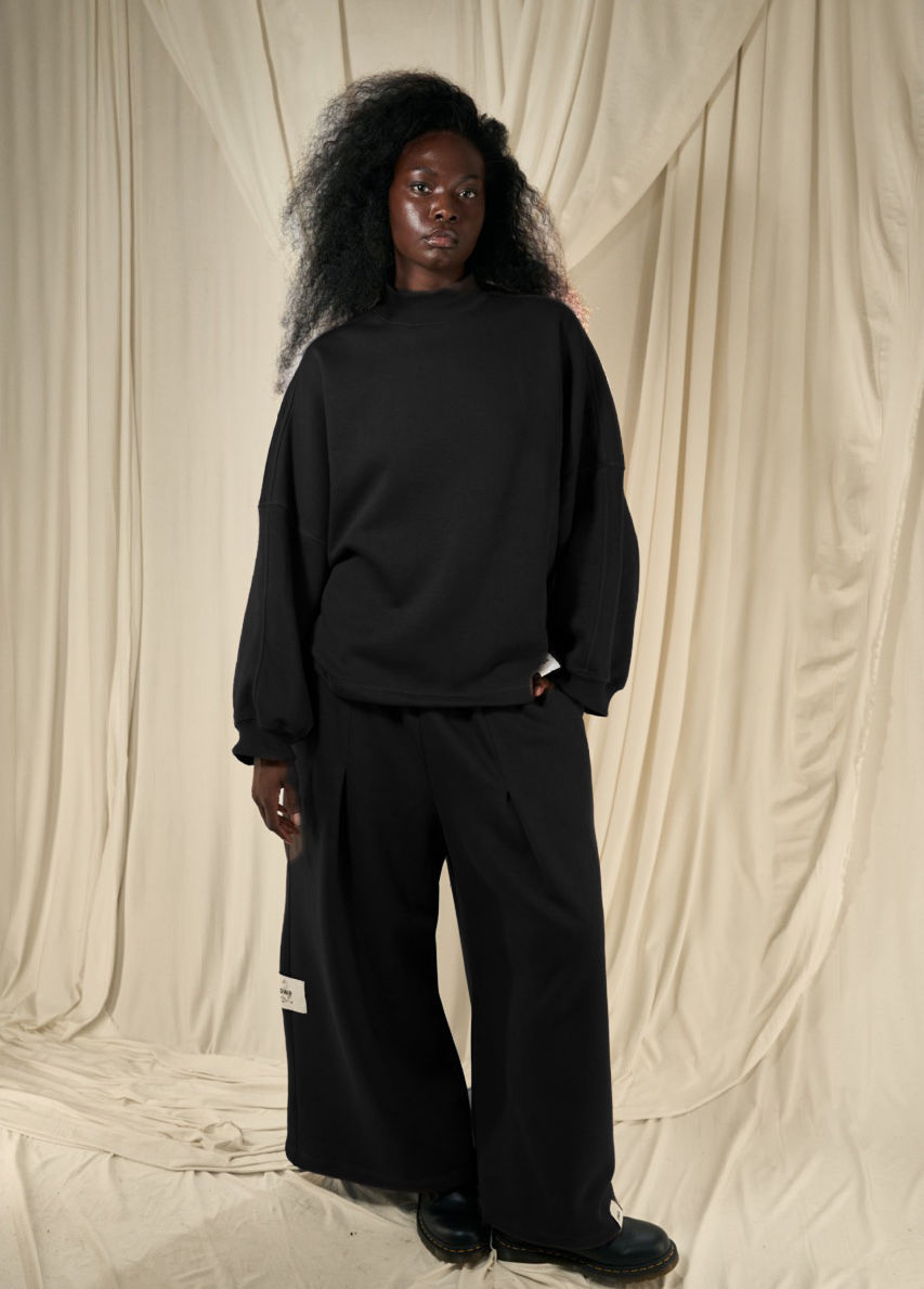 Wide-leg sweatpants with a relaxed drape and soft volume.